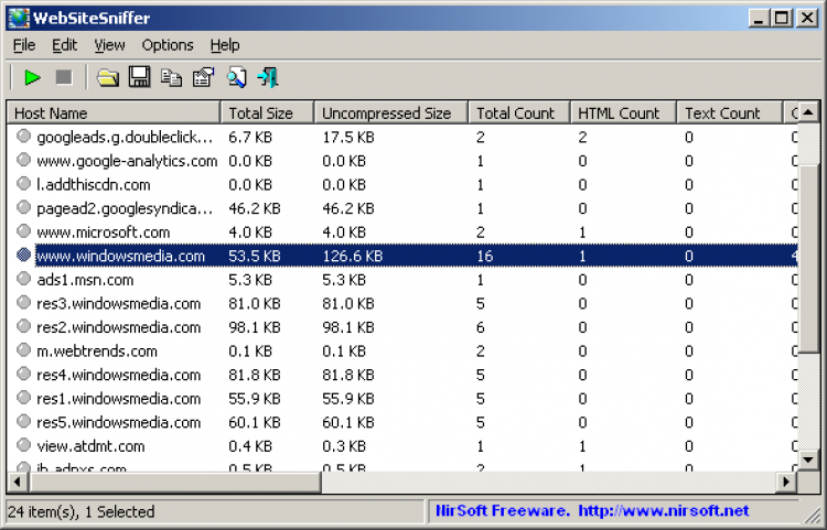 WebSiteSniffer - это утилита, которая перехватывает все файлы, скачиваемые при серфинге интернета, и сохраняет их на жесткий диск. Программа может перехватывать: HTML, текстовые, XML, CSS, видео и аудио, рисунки, скрипты и SWF (Flash) файлы.