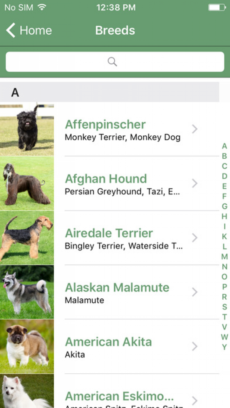 Программа содержит в себе информацию об истории породы, характерах, шерсти, средних размерах, весе собак, а также сведения о том, какая порода больше подойдет тем или иным семьям.