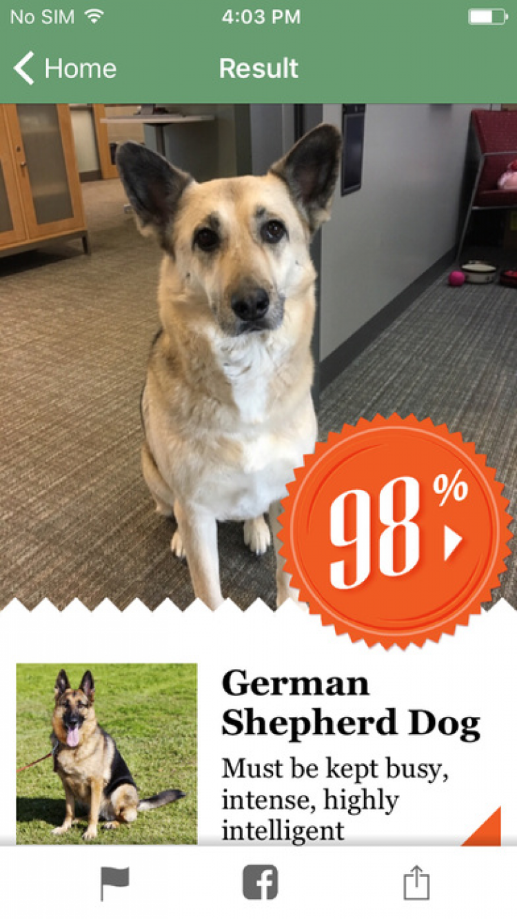 Приятной особенностью программы What Dog является наличие специального, развлекательного режима, позволяющего определить, какой собакой были бы вы или ваши друзья.