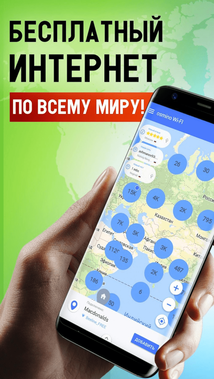 osmino Wi-Fi: бесплатный WiFi доступ к быстрому бесплатному интернету всегда и везде. Уникальный WiFi-менеджер для автоматического подключения к бесплатному WiFi и обмена данными об открытых wifi точках и паролями к закрытым Wi-Fi сетях по всему миру.