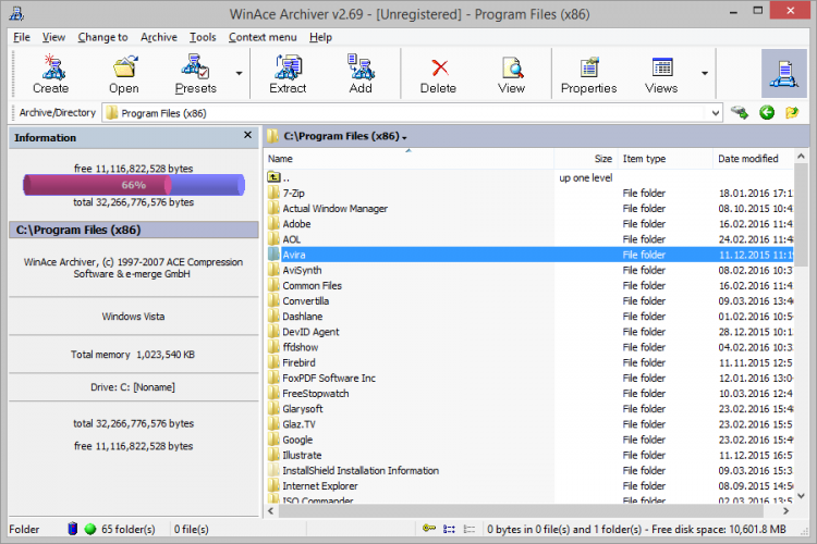 WinAce - это мощный архиватор файлов, поддерживающий все распространенные форматы, а также работающий с собственным форматом "ACE". Предоставляет полный спектр возможностей для работы с архивами.
