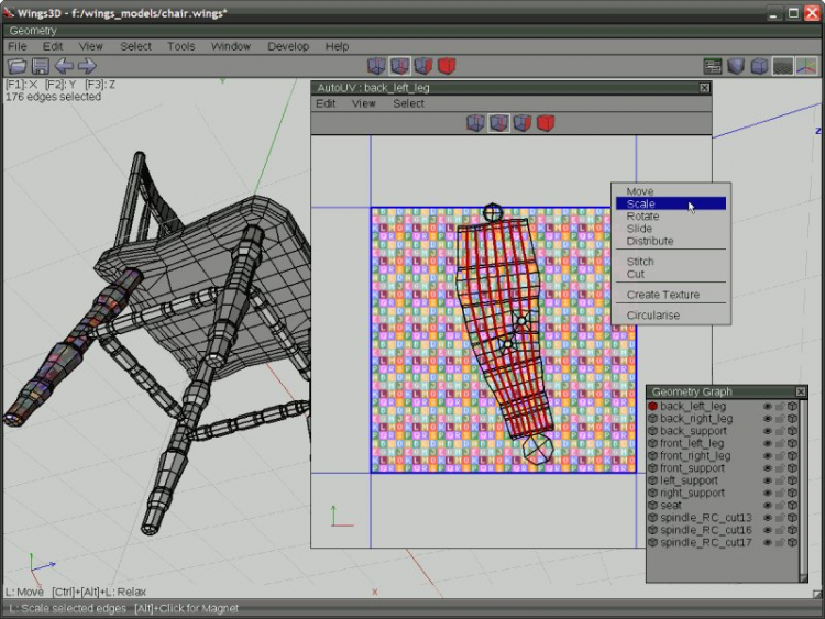Многие из этих команд одновременно имеют простые и сложные настройки, относящиеся к тому, как именно данный инструмент будет воздействовать на редактируемую модель. Программа также может накладывать текстуры и материалы на модель и имеет встроенный автогенератор текстурных координат.