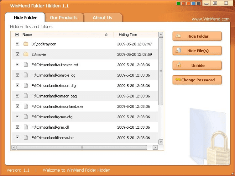 Программа WinMend Folder Hidden очень проста в использовании. Ее интерфейс удобен и понятен, а кроме того, поддерживает сменные цветовые темы.