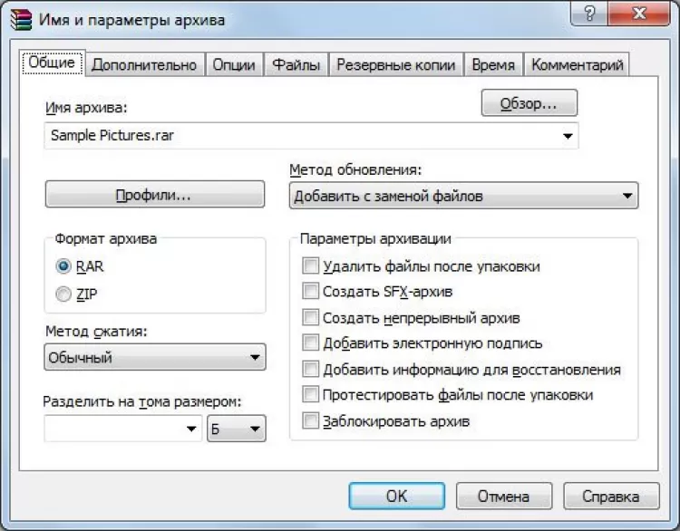 - разделение архивов на отдельные тома;