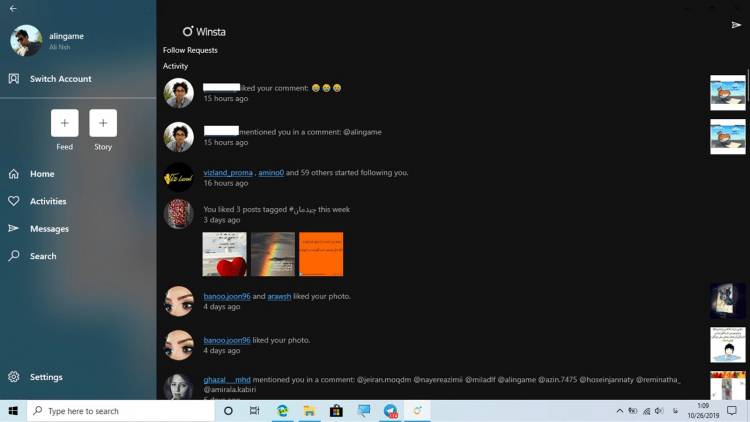 Winsta - это неофициальный клиент Instagram для компьютеров и других устройства на Windows 10. Поддерживает весь функционал этой соцсети и делает ее использование еще более удобным.