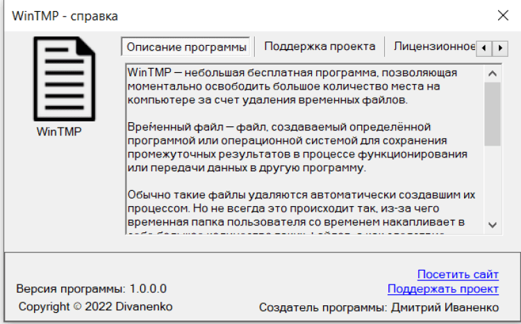 WinTMP — небольшая бесплатная программа, позволяющая моментально освободить большое количество места на компьютере за счет удаления временных файлов.