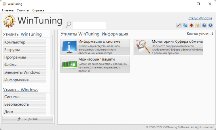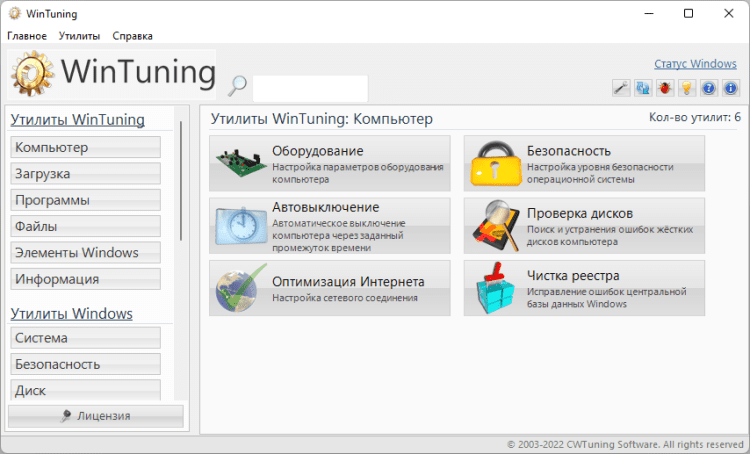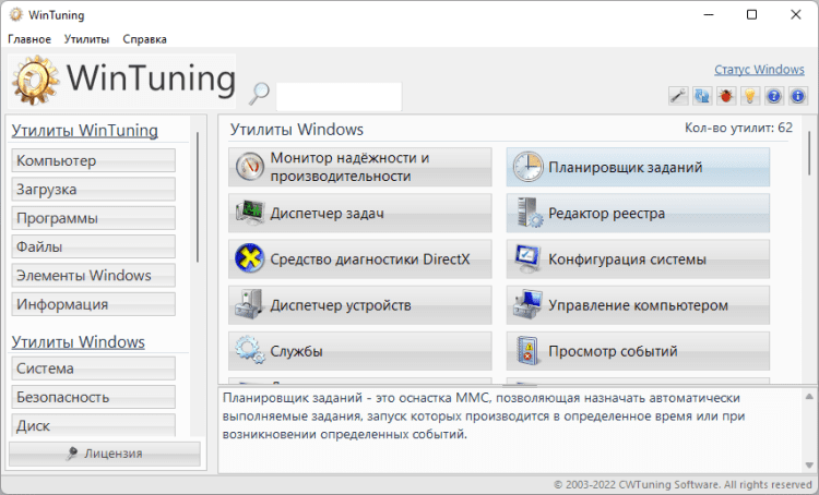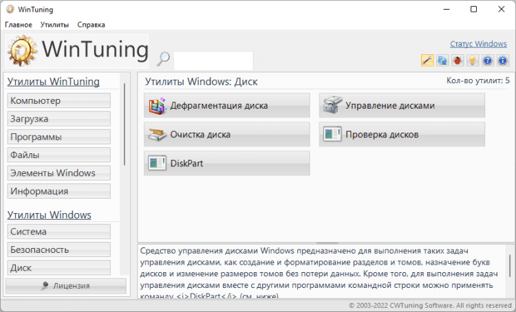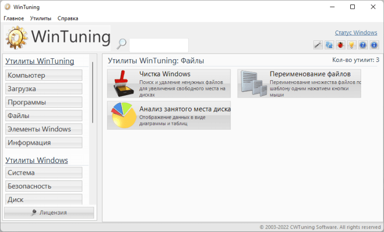 Утилита для очистки жесткого диска от ненужных файлов (кэша браузеров, логов, ярлыков недавних документов, временных файлов и т.д.) позволяет освободить дополнительное пространство на жестком диске. В утилите «Редактор автозагрузки» можно безопасно (с возможностью восстановления) отключить ненужные программы, которые могут замедлять загрузку Windows 7. Программа содержит базу данных утилит, встроенных в Windows 7, с подробным их описанием и возможностью запуска из единой оболочки (в общей сложности в базе находится около 80 утилит Windows 7).