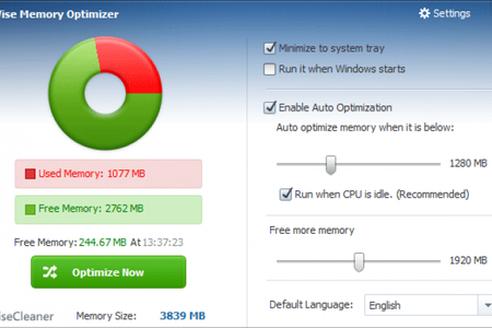 Wise Memory Optimizer позволяет быстро и легко освободить заданный объем памяти. Выполнять очистку можно самостоятельно, или же доверить эту задачу программе, тогда она будет работать в автоматическом режиме.