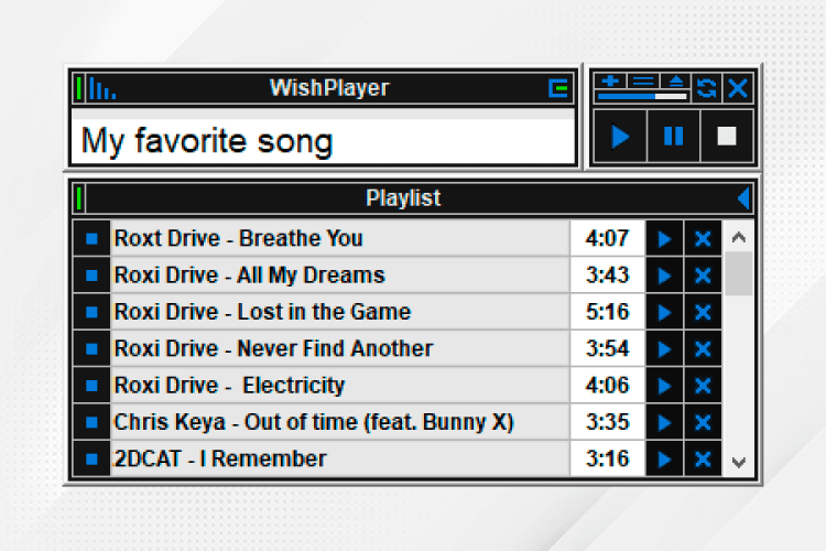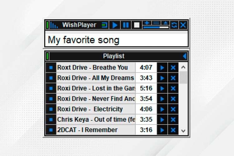 WishPlayer — аудиоплеер обладает возможностью воспроизводить аудио по ключевым словам названия песни. Достаточно ввести название песни в поле ввода проигрывателя и нажать кнопку плей. Поддержка глобальных горячих клавиш, позволяет удобно и быстро запускать на проигрывание любое выделенное название песни где бы оно не находилось - в окне чата, на странице сайта в браузере, в текстовом редакторе и где угодно.
