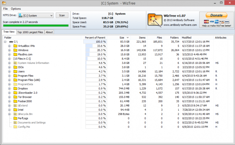 WizTree Portable - это программа, которая показывает подробную информацию о распределении места на жестком диске. С ее помощью можно быстро узнать какие файлы или папки занимают на диске больше всего места.