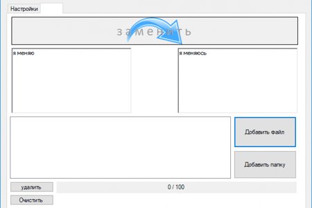 Программа для замены текста в нескольких файлах сразу. Работает с расширениями .doc, .docx, .xls и .xlsx. Позволяет сохранять измененые файлы с новыми именами. Можно добавлять как файлы, так и папки, ищет как в добавленной папке, так и во всех вложенных.