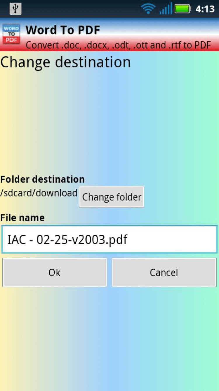 Word To PDF (DOC, DOCX) - это программа для преобразования файлов в форматах DOC, DOCX, ODT и RTF в PDF. Выберите нужный вам файл, укажите путь, куда следует сохранить полученный PDF документ, и программа сделает остальное.