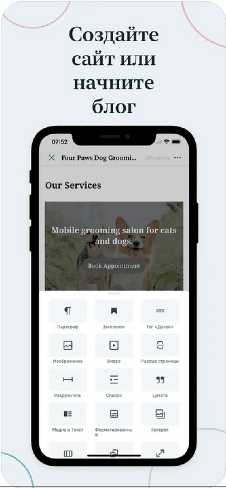 Используя приложение WordPress, вы сможете в любой момент быстро и удобно управлять своим сайтом. При этом, оно совместимо как с блогами WordPress, так и с сайтами под управлением WordPress версии 4.0 или выше.