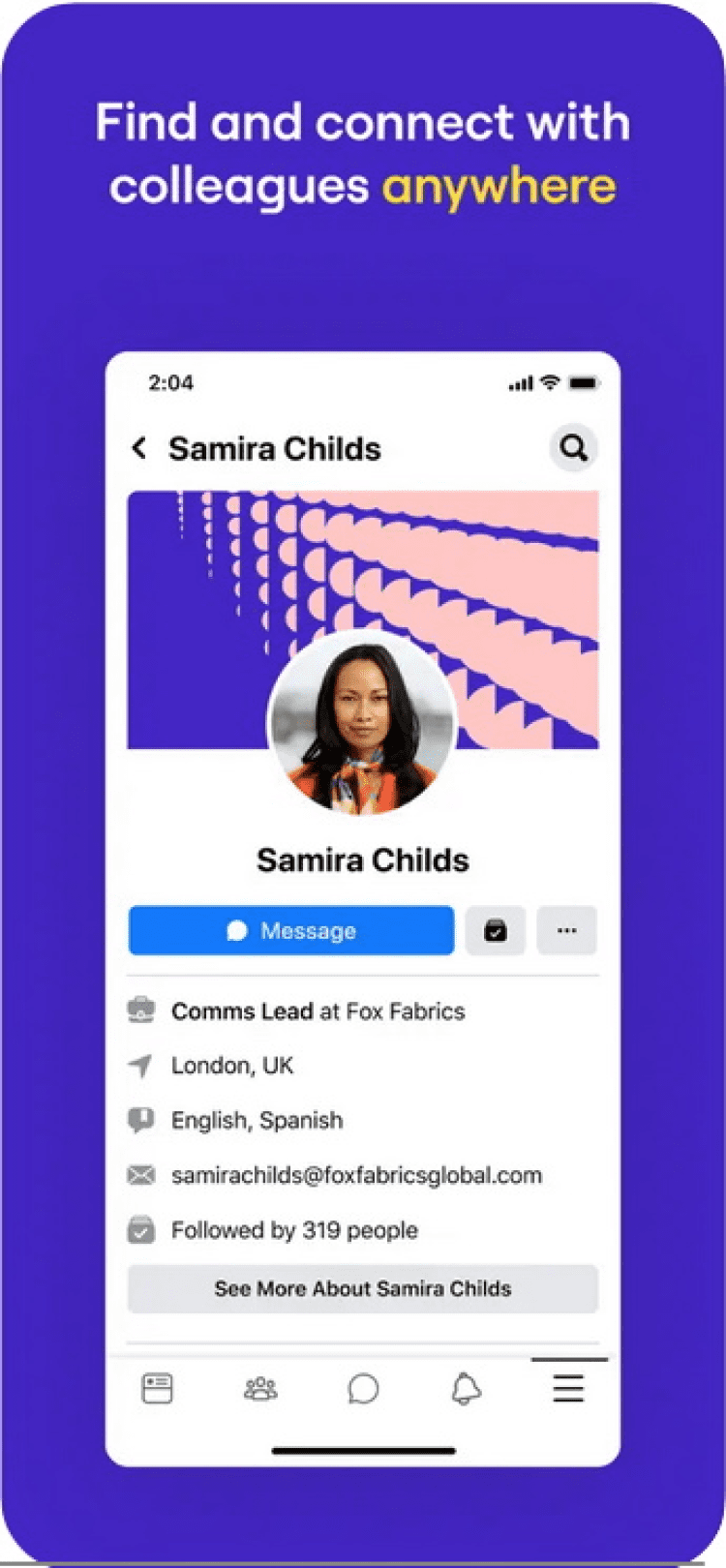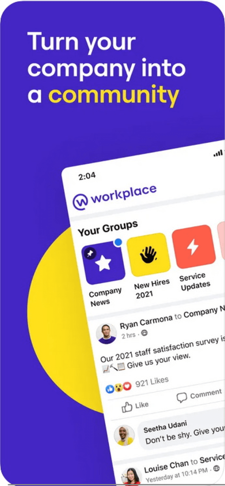 Это приложение позволит вам общаться с коллегами по работе при помощи аккаунта на Facebook, зарегистрированного через вашего работодателя.