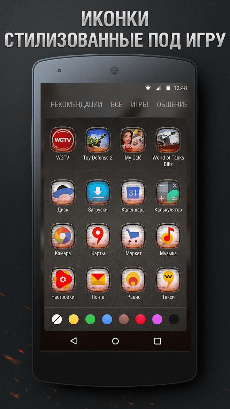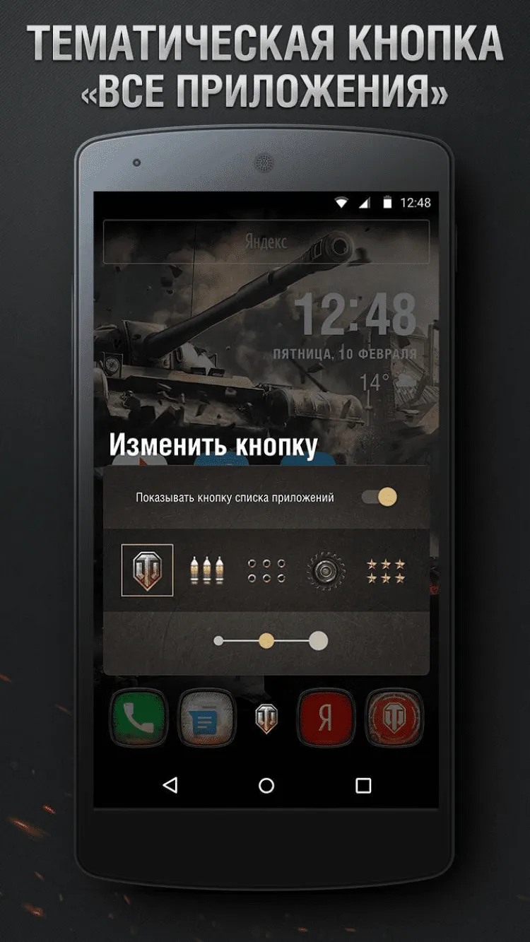 Классная тема оформления для вашего Android-смартфона, созданная по мотивам популярной игры World of Tanks.