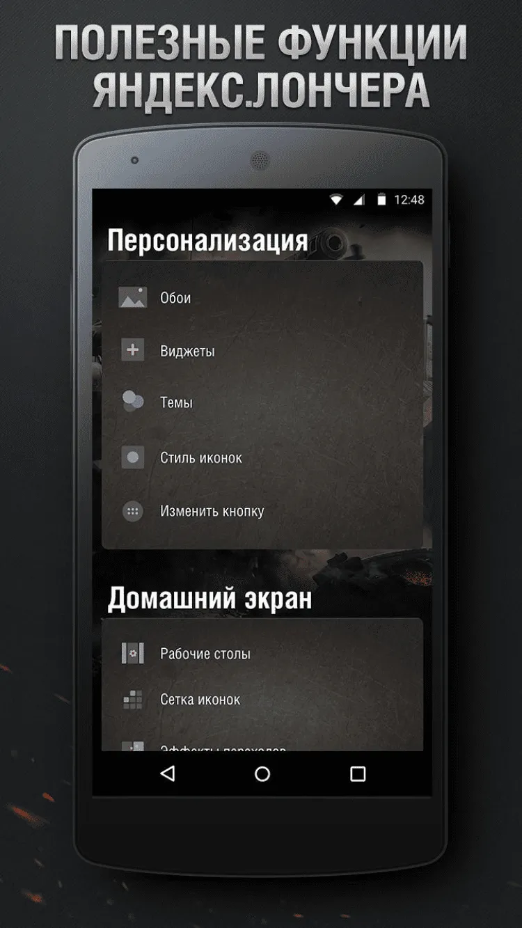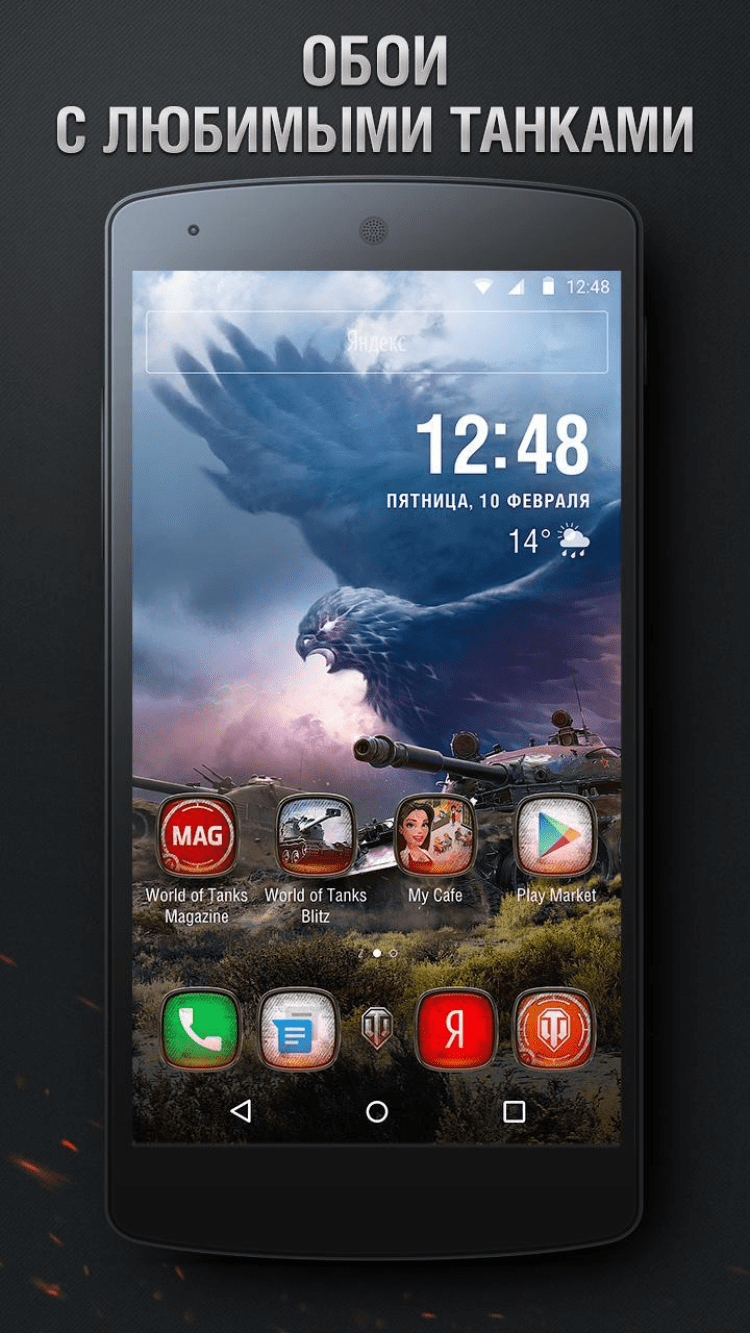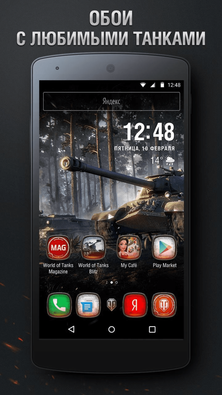 Установить программу очень просто. Скачайте World of Tanks Theme для Android с нашего сайта, затем установите Яндекс.Лончер и сделайте его главным экраном по умолчанию. Для этого, потребуется всего лишь выбрать соответствующий пункт во всплывающем меню. Если же Лончер уже установлен, вам необходимо просто выбрать World of Tanks в коллекции тем.
