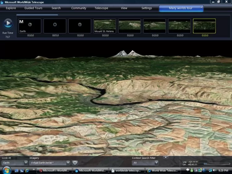 WorldWide Telescope - это программа, которая представляет собой виртуальный телескоп и позволяет пользователям рассматривать звёздное небо в нескольких диапазонах электромагнитных волн, а также поверхности планет солнечной системы.