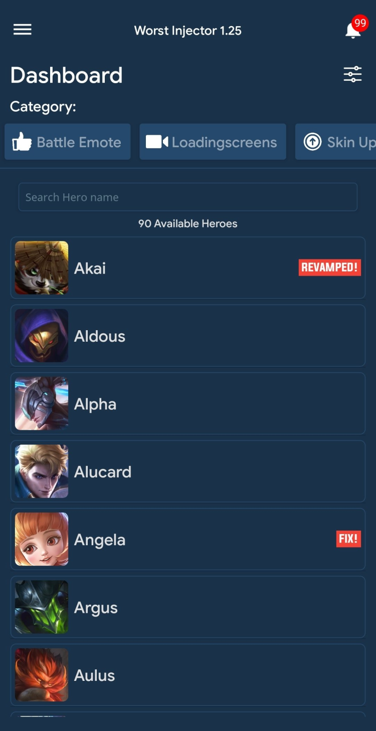 Скачайте Worst Gaming Injector для Android и разблокируйте все скины для персонажей вашей любимой мобильной игры, совершенно бесплатно,