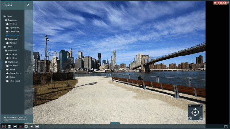 Xeoma позволяет формировать изображения со множества камер в сетку и показывать их на одном мониторе, а также "листать" сигналы по очереди. Кроме этого в программе есть множество других функций и настроек для организации профессиональной системы видео наблюдения.