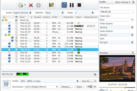- Риппинг видео DVD в MP4, H.264/MPEG-4 AVC, AVI, MPEG, DivX;
