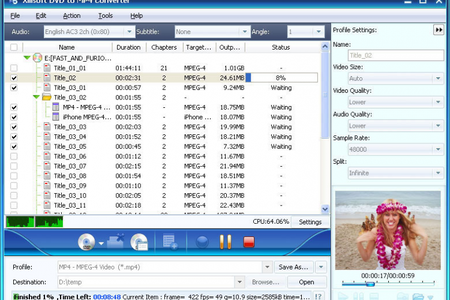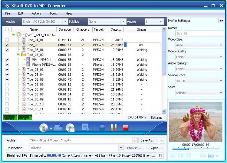 Xilisoft DVD to MP4 Suite - это набор инструментов для риппинга DVD-видео в формат MP4 для мобильных проигрывателей. Также, DVD to MP4 Suite позволяет конвертировать видео из популярных форматов, таких как AVI, MPEG, DivX, MOV, RM, WMV, 3GP, VOB, H.264/MPEG-4 AVC, DV, XviD, H.264/PSP AVC в формат для воспроизведения на мобильных плеерах.