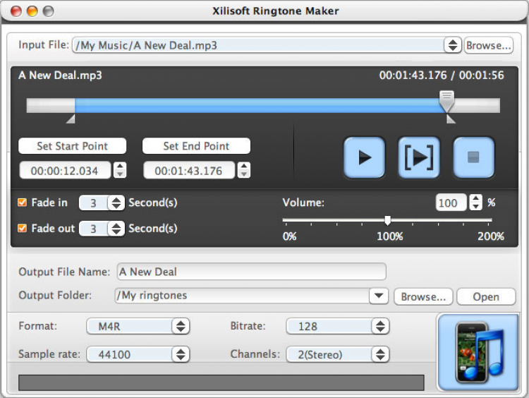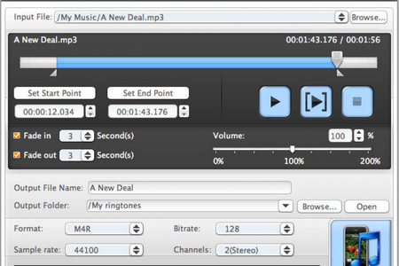 - Создание рингтонов в форматах MP3, WAV, M4R, AMR, M4A или OGGиз различных видео/аудиоформатов;