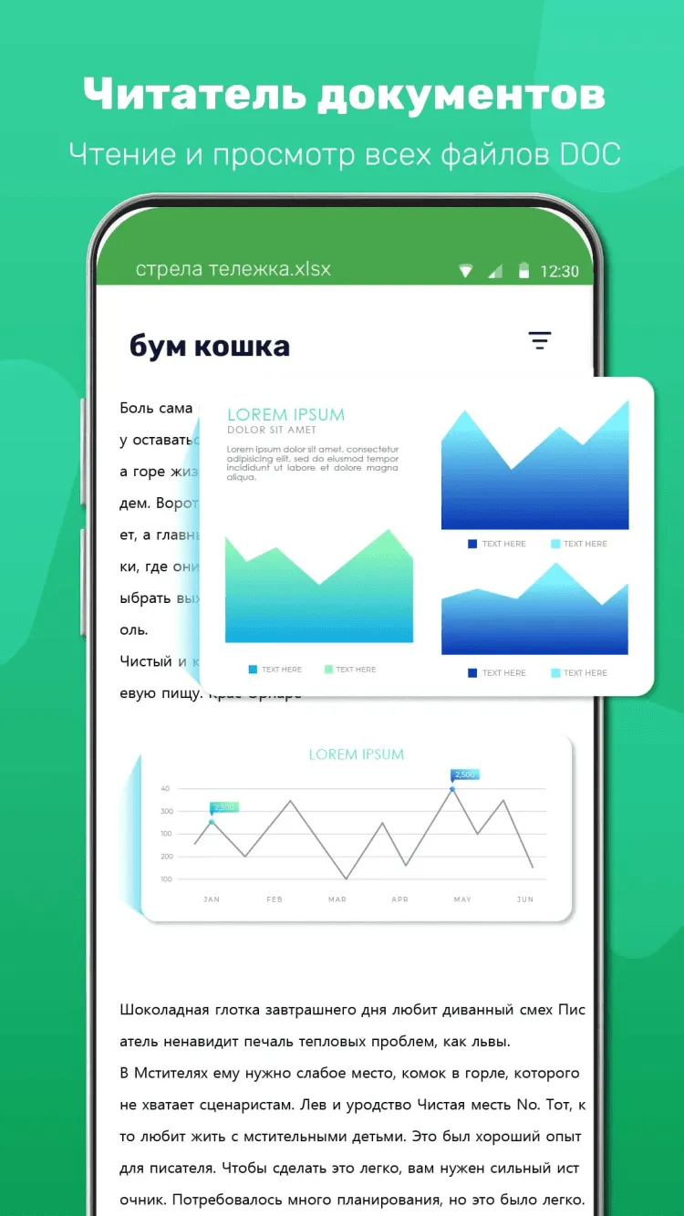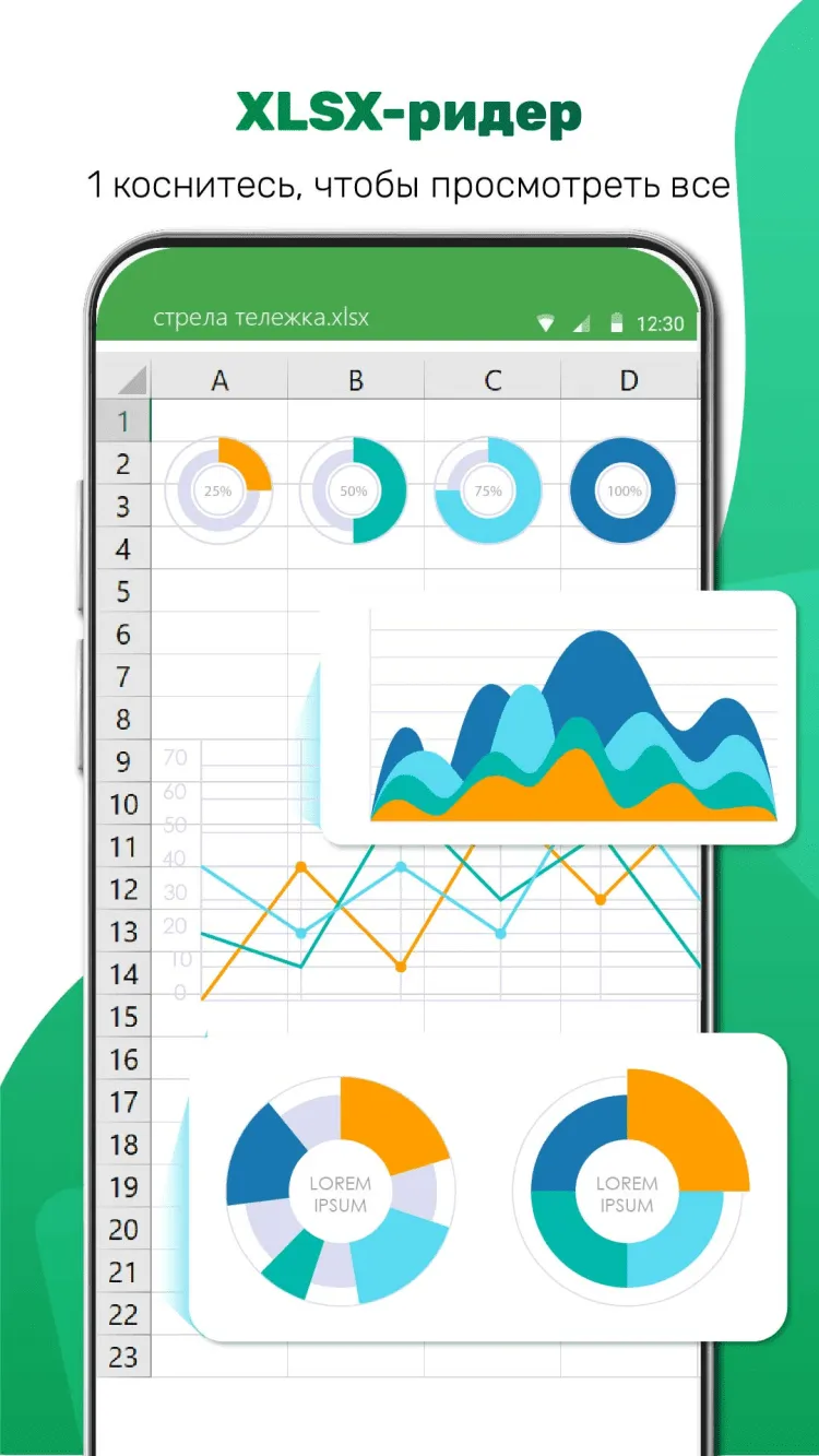 XLSX Reader - Excel Viewer — это небольшая программа, которая поможет вам просматривать таблицы MS Excel на экране своего мобильного телефона в любой момент, в режиме офлайн. Распространяется бесплатно, но не имеет функций создания и редактирования документов.
