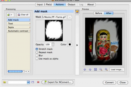 XnConvert поддерживает все распространенные графические форматы, и позволяет с легкостью конвертировать изображения между ними. Выходные изображения можно сохранять в локальную папку, архив, FTP-сервер, а также отправлять по электронной почте и загружать их в Flickr или Picasa. XnConvert позволяет не только конвертировать изображения. Программу можно также использовать для удаления мета-данных, изменения цветового баланса, обрезки и наложения визуальных эффектов.