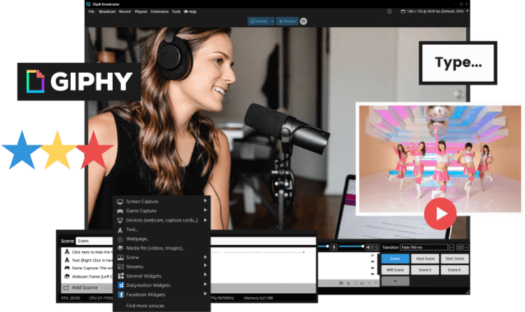 XSplit Broadcaster обладает удобным, интуитивно понятным пользовательским интерфейсом, которые дает пользователям практически неограниченные возможности для организации интересных и креативных покастов или видео записей. Пользователь может организовать одновременную трансляцию с нескольких источников, включая веб-камеру, медиа файлы, приложения (например, Skype), микрофон и т.д.