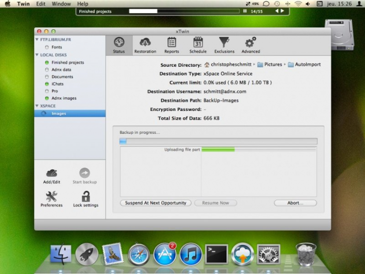 xTwin Программа для создания резервных копий данных в сети. Поддерживаются большинство серверов: FTP, FTPS, SFTP, WebDAV. Так же есть поддержка сохранения резервных копий оффлайн, на внешние устройства. Позволяет так же сжимать и шифровать сохраняемые данные.
