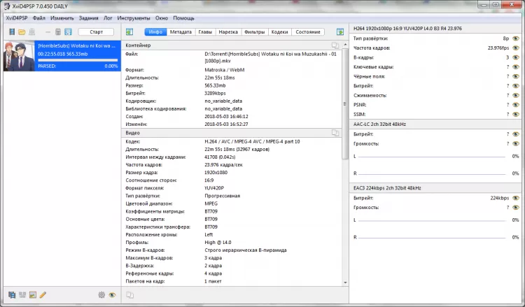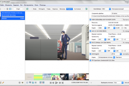 - Поддержка многих дополнительных функций, таких как чтение BlueRay, гибкие настройки пресетов для смартфонов, функция мгновенной синхронизации нескольких дорожек. Программа поддерживает функции быстрой обрезки черных полос и установки обложки.
