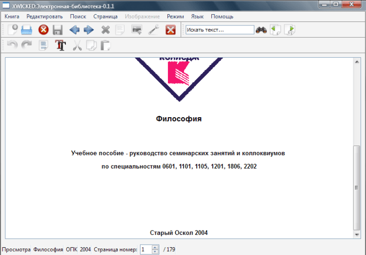 XWICKED Электронная библиотека - это программа разработана для создания, редактирования и чтения электронных книг и электронных методических пособий. Она подходит для использования как преподавателям во всех учебных заведениях, для создания материалов, необходимых в образовательном процессе, так и всем остальным работникам любой сферы деятельности, где есть необходимость работать с большим количеством документов, с несложным содержанием, так как все документы хранятся централизованно в базе данных, что увеличивает надёжность сохранности этих документов. База данных SQLite3. Это позволяет располагать файл базы на любом сервере(Windows, GNU / Linux, и т. д.), без необходимости установки сервера баз данных. Другие пользователи то же смогут создавать простые рефераты и тому подобные документы.