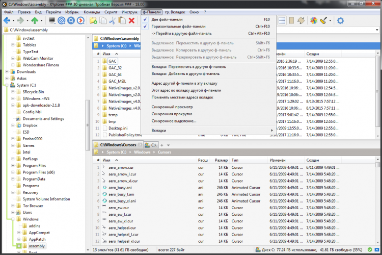 Этот файловый менеджер внешне схож со стандартным Проводником Windows, однако, предлагает в разы больше функций и настроек. Конечно, с его помощью можно копировать, перемещать, удалять и создавать файлы, но делать это гораздо удобнее благодаря настраиваемому интерфейсу. Он может отображать и древо каталогов, и две независимые панели для работы с файлами. При этом, каждая из двух панелей может держать сразу несколько открытых вкладок.