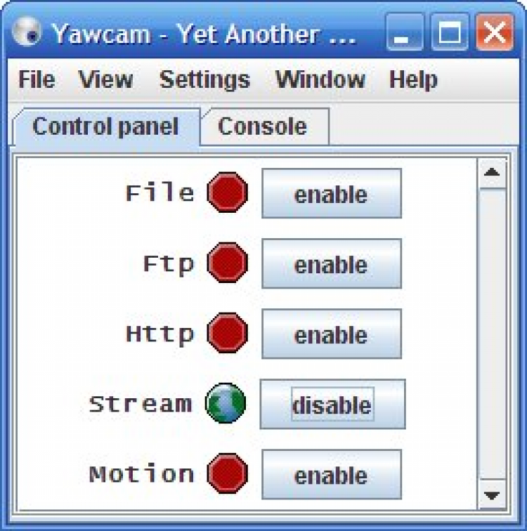 Для многофункциональной работы с IP и веб-камерами сервис FreeSoft рекомендует скачать Yawcam. Продвинутая утилита создает фото в GIF, JPG, PNG форматах и передает снимки по протоколу HTTP. Позволяет делать запись видеофайлов, транслировать их в интернет или просто сохраняет в памяти компьютера. Программа обладает понятным интерфейсом и удобной панелью управления видеотрансляцией, которая помогает отслеживать количество фактических пользователей, подключенных к ПК. Доступ к видеоряду легко запоролить.