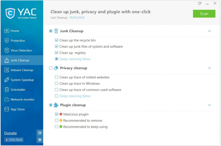 Программа позволяет выполнить быстрое сканирование компьютера для обнаружения всех мусорных файлов, ненужного кэша, а так же их быстрого удаления. Помимо этого, Yet Another Cleaner выполняет поиск всех возможных уязвимостей в безопасности системы и позволяет устранить их.