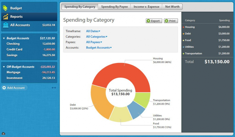 С помощью YNAB можно взять под контроль все расходы и доходы, внося их в программу. Программа позволяет делить статьи по категориям, добавлять к ним краткие описания или пояснения, строить наглядные графики для удобного анализа бюджета, планировать и разбивать транзакции, генерировать детальные отчеты и многое другое. В YNAB есть пошаговый мастер настройки, за счет чего программой легко пользоваться.