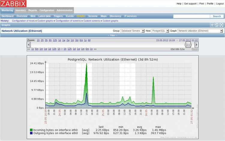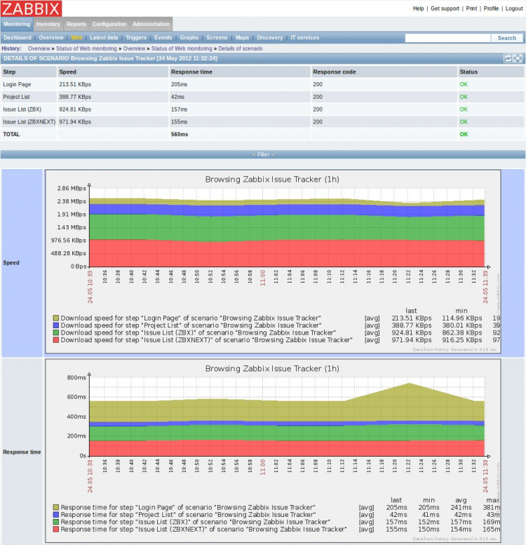 Для хранения данных используется MySQL, PostgreSQL, SQLite или Oracle. Веб-интерфейс написан на PHP. ZABBIX поддерживает несколько видов мониторинга: