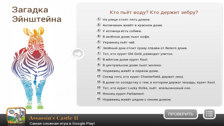 Загадка Эйнштейна — это известная логическая задача, по легенде созданная Альбертом Эйнштейном в годы его детства. Также бытует мнение, что она использовалась Эйнштейном для проверки кандидатов в ассистенты на способность к логическому мышлению.