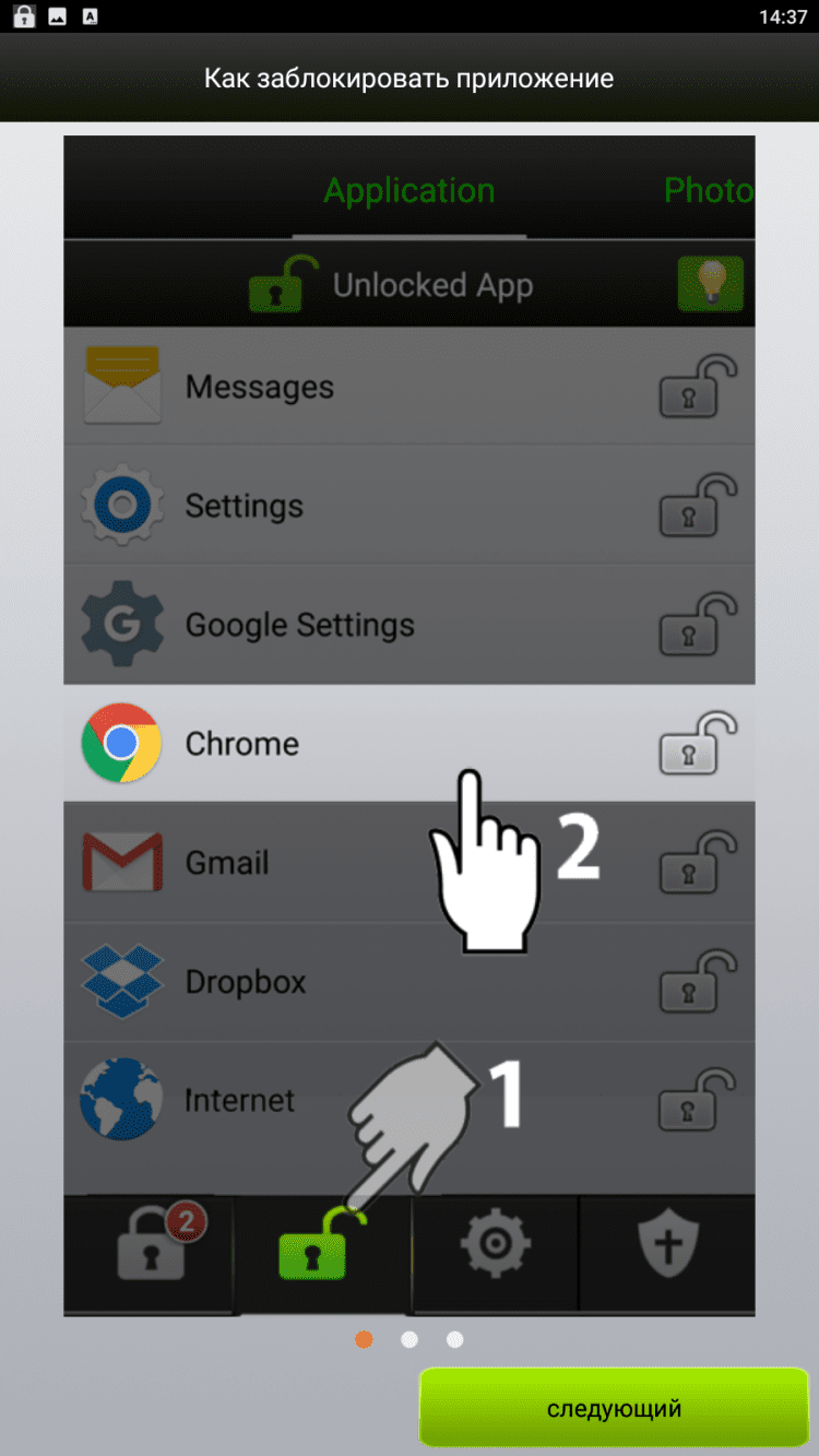 - Заблокировать приложения: заблокируйте любое приложение, какое захотите. Очень легко.