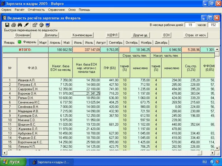 По умолчанию в программе уже настроены наиболее востребованные начисления и удержания, можно рассчитывать заработную плату используя настройки по умолчанию, а можно, в случае необходимости, изменять настройки уже имеющихся начислений и удержаний или создавать новые. Автоматический расчёт имущественных вычетов по кодам 311 и 312, которые указываются в окне Отчёт по НДФЛ, по умолчанию авторасчёт включён, включение и отключение авторасчёта осуществляется в окне Сведения об Организации. Дружелюбный, интуитивно понятный интерфейс под WINDOWS поможет легко освоиться в данной программе даже начинающему пользователю ПК.