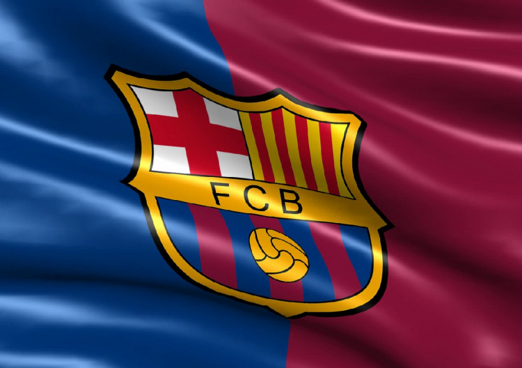 Посередине расположена эмблема клуба в форме «котла», разделенного на три квартела. В двух верхних воспроизводится флаг города Барселоны (то есть Крест святого Георгия и флаг Каталонии). В нижней части расположен кожаный мяч образца первой половины XX века на фоне сине-гранатовых полос — цветов клуба. В центре щита на золотистой полосе, которая отделяет верхнюю и нижнюю части герба, выведены инициалы названия клуба FCB (Football Club Barcelona).