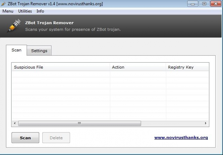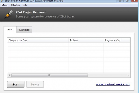 Zeus Trojan Remover - программа, которая чистит ваш компьютер от всех версий вируса Zeus Trojan, также известного как ZBot и Wsnpoem, который ворует данные вашей кредитной карты с целью кражи денежных средств. Автоматически сканирует систему, выявляя наличие трояна и его модификаций. Программа легко и быстро устанавливается, так как нет никаких специальных опций или требований к программному обеспечению. Она заключена в удобный интерфейс, состоящий из обычного окна, разделенного на три панели, где вы можете выполнять сканирование, настраивать параметры и изменять язык пользовательского интерфейса.