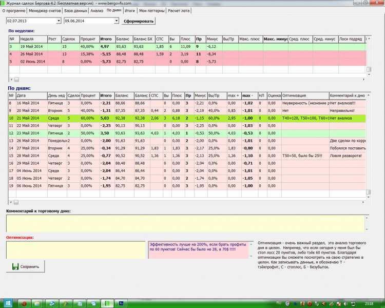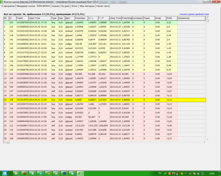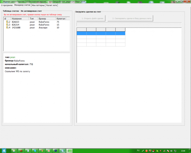 "Журнал сделок" - это программа для ведения сделок на Форекс. Она автоматически анализирует загруженный отчет с MetaTradеr и разбирает его по дням. С помощью программы "Журнал сделок" можно вести учет сразу нескольких счетов, анализировать индивидуальные сделки, прикреплять к ним комментарии, скриншоты, графики анализа и статистику по парам и по стратегиям. "Журнал сделок" это необходимый инструмент для тех, кто проводит сделки на Форекс.