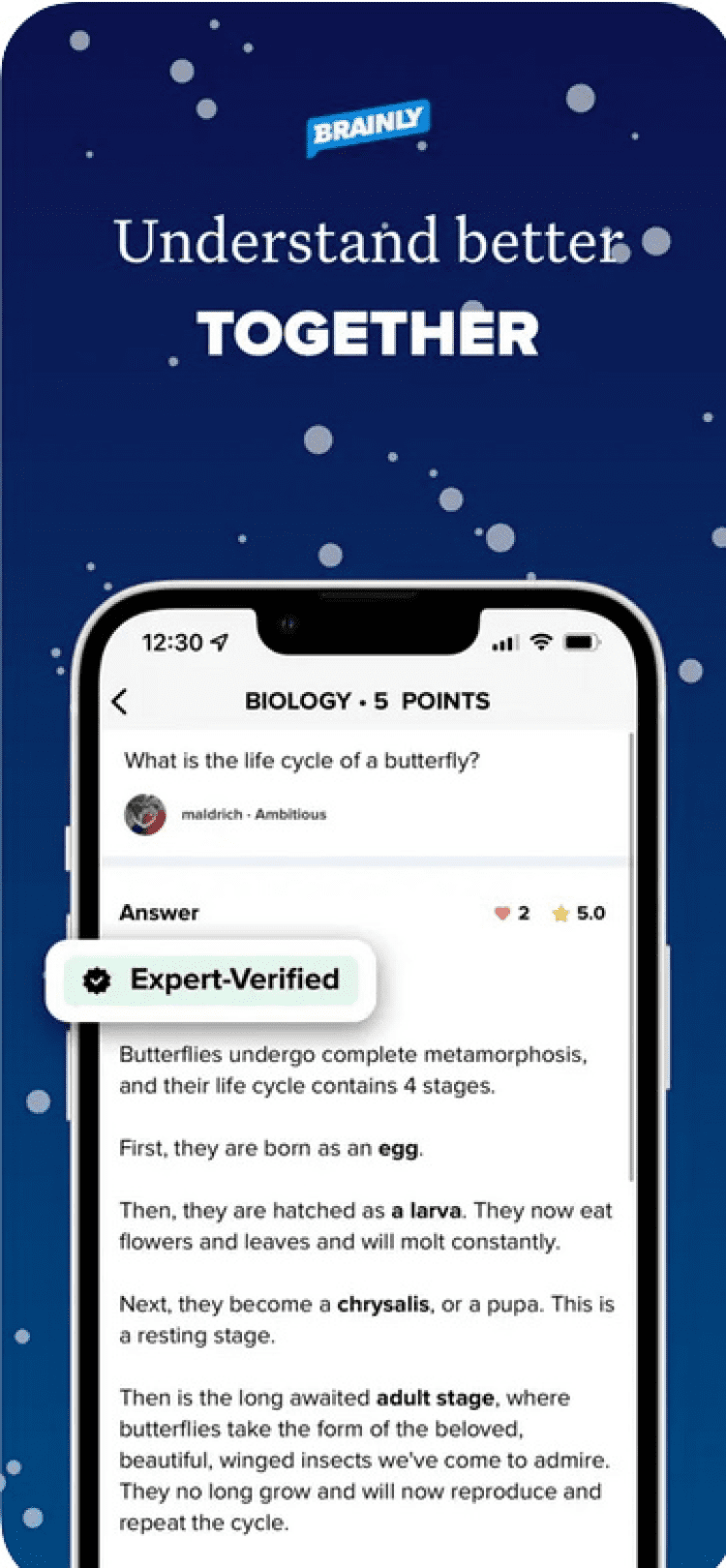Это приложение предназначено для обмена знаниями между школьниками. В последней версии программы, вы найдёте разделы по всем школьным предметам: алгебре, геометрии, истории, обществознанию, физике, химии, литературе, русскому и иностранным языкам и т.д. Выберите нужный и задайте интересующие вопросы, а участники сообщества дадут понятный ответ в течение нескольких минут. Если вы не хотите задавать вопрос, воспользуйтесь поиском: возможно, аналогичная задача уже была решена ранее.