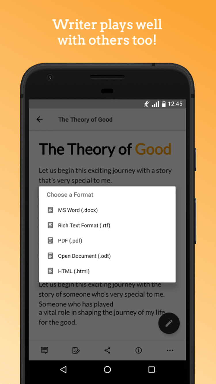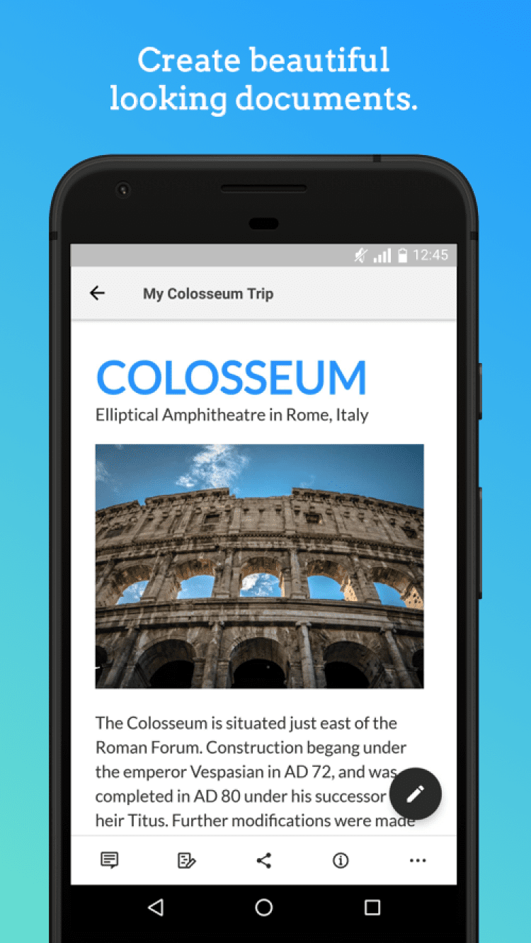 Zoho Writer - программа для создания и управления текстовыми документами на устройствах Android. Создавайте новые документы и открывайте уже существующие, в том числе и документы MS Office, а так же загружайте их в хранилища Zoho Docs, Google Drive или Dropbox.