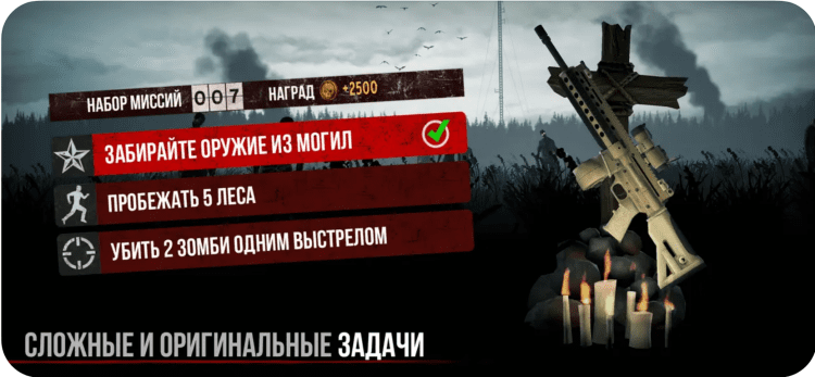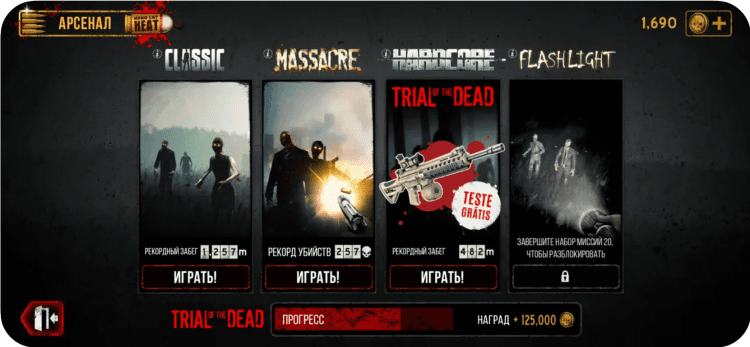 - большой арсенал оружия, система достижений, основанная на количестве пройденных метров или убитых зомби;