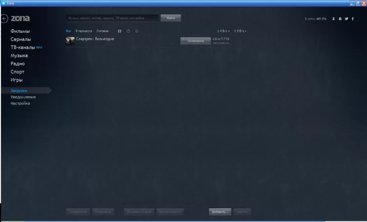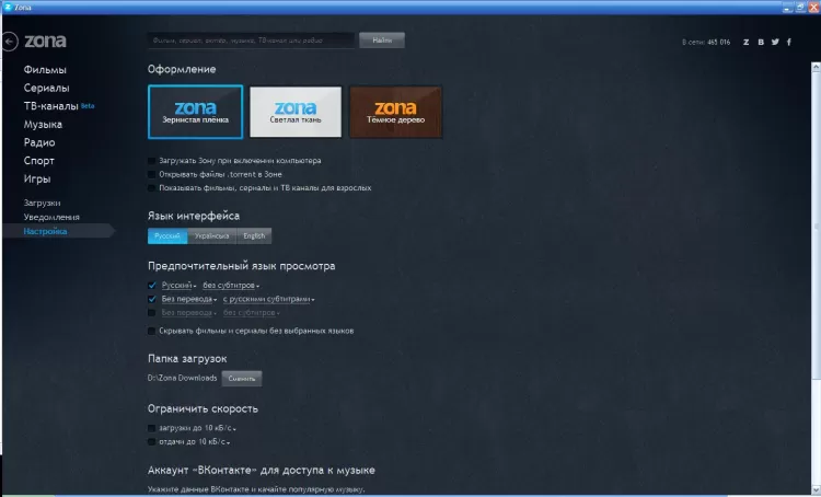Zona - это популярный торрент-клиент с миллионной аудиторией пользователей, позволяющий быстро скачивать фильмы и сериалы. С помощью программы можно просматривать торренты онлайн, а также слушать музыку, играть в игры, смотреть прямые трансляции спортивных состязаний и ТВ-каналов.