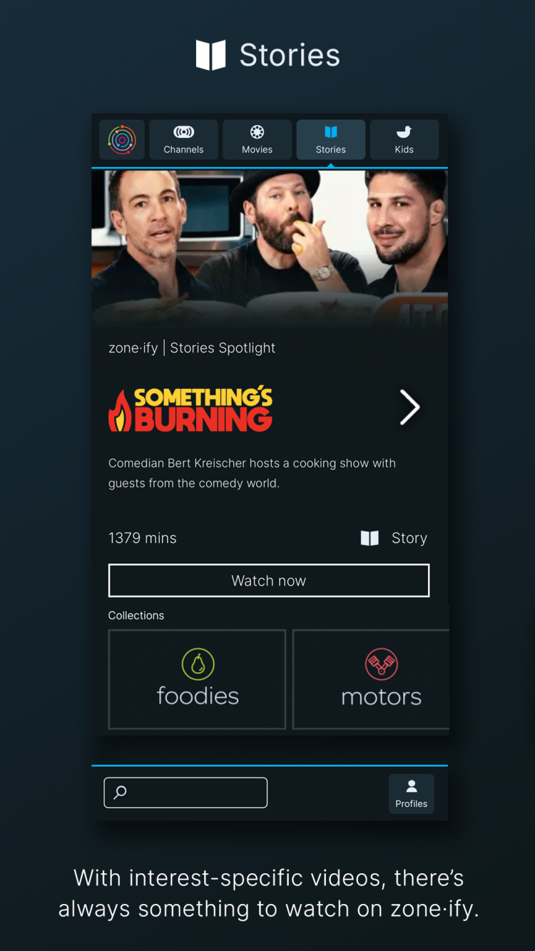 Устали платить за любые развлечения? Музыкальные и видеосервисы, игровые платформы, спортивные сервисы — все они требуют платной подписки. Но благодаря zone·ify, вам не придется отказывать себе в удовольствии: здесь вы можете посмотреть тысячи фильмов и сериалов разных жанров, не заплатив ни копейки. Программа предлагает подборки фильмов по жанрам или настроению, помогая найти контент в соответствии со своими предпочтениями, за считанные секунды. Не хотите смотреть фильмы? Не проблема: этому приложению есть что предложить, в разделах с телеканалами и авторскими короткими видео. А для самых маленьких зрителей предусмотрен специальный раздел с мультфильмами на любой вкус.