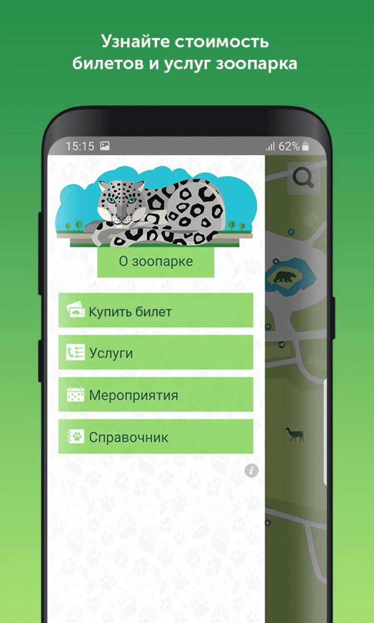 - просмотр справочной информации о режиме работы, стоимости билетов, услугах и мероприятиях зоопарка;