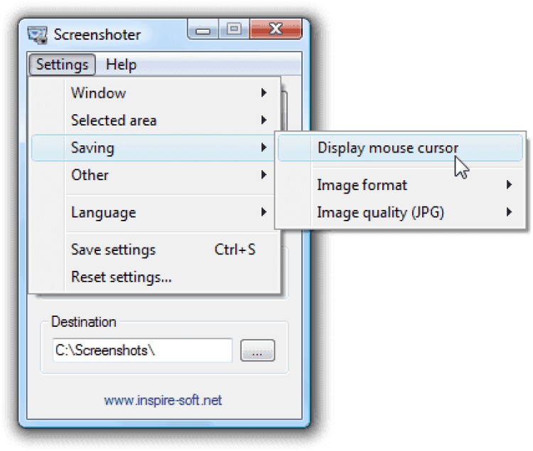 Screenshoter имеет компактный интерфейс, может делать скриншоты нажатием одной кнопки или горячей клавиши. Есть функция автоматического присваивания имен (дата или порядковый номер). В настройках Screenshoter можно включить/отключить отображение курсора на скриншоте.